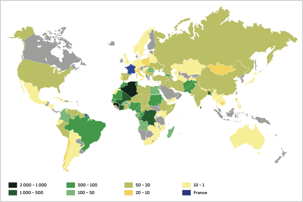 La France compte 6,8 millions d’immigrés (dont 37% ont acquis la nationalité française) et 5,1 millions d’étrangers (Insee 2020), dont 34% ont la nationalité d’un pays de l‘Union européenne et affiliés (Espace économique européen + Andorre, Grande Bretagne, Monaco et Suisse). Particulièrement exposés aux facteurs de précarité administrative et sociale, les ressortissants de pays-tiers (hors Union européenne) étaient 3,3 millions fin 2019.